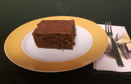 Mehl, Carob-Pulver und Backpulver gut vermischen. Öl, Hafermilch, Zucker und Marmelade gut vermengen, bis sich der Zucker aufgelöst hat. Dann zu den trockenen Zutaten geben und alles mit einem Schneebesen zu einem glatten Teig verrühren. Den Teig in eine gut befettete beliebige Backform (z. B. Kastenform, eine eckige Backform, etc.) füllen und glattstreichen.
