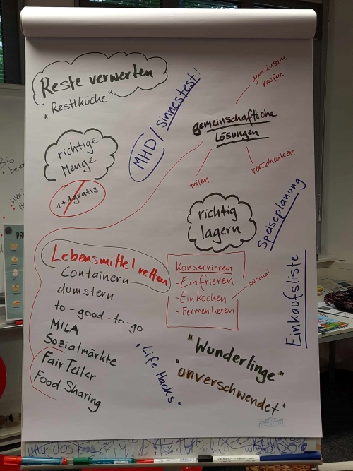 • Essen retten statt verschwenden: Warum landet so viel Essen im Müll? Wie kann man Reste verwenden bzw. vermeiden und damit Lebensmittel retten? Was bedeuten Mindesthaltbarkeitsdatum und Verbrauchsdatum? Bei einem „Pizzaspiel“ wurde gemeinsam gebrainstormt, was alles notwendig ist, um eine Pizza herzustellen und was alles weggeschmissen wird, wenn eine Pizza nicht aufgegessen wird – eine tolle Methode, um das Thema zu veranschaulichen.